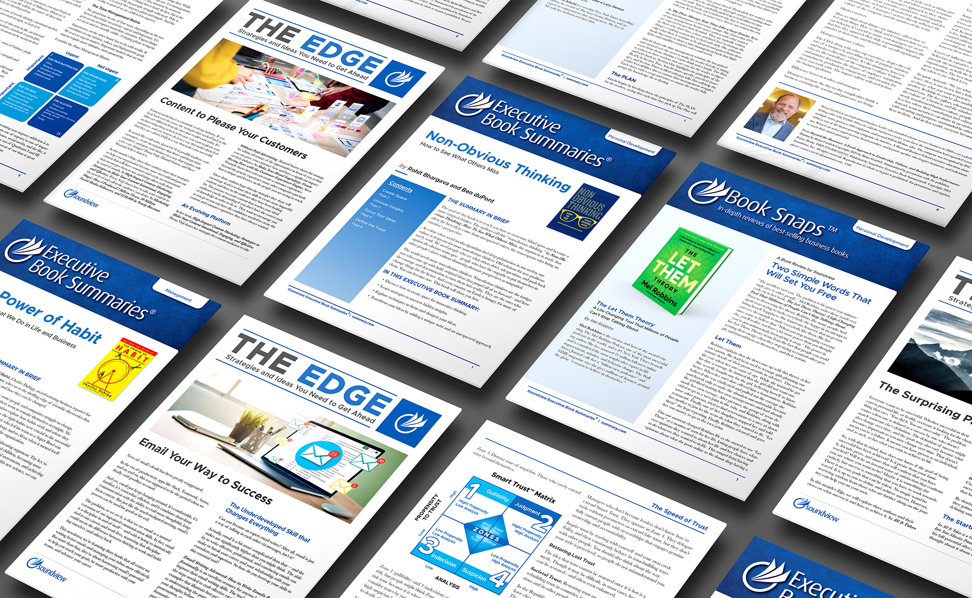 I led the end-to-end redesign of Soundview Inc.'s flagship editorial products, leveraging typography, imagery, and data visualization to elevate content presentation, increasing reader engagement and digital subscriptions.